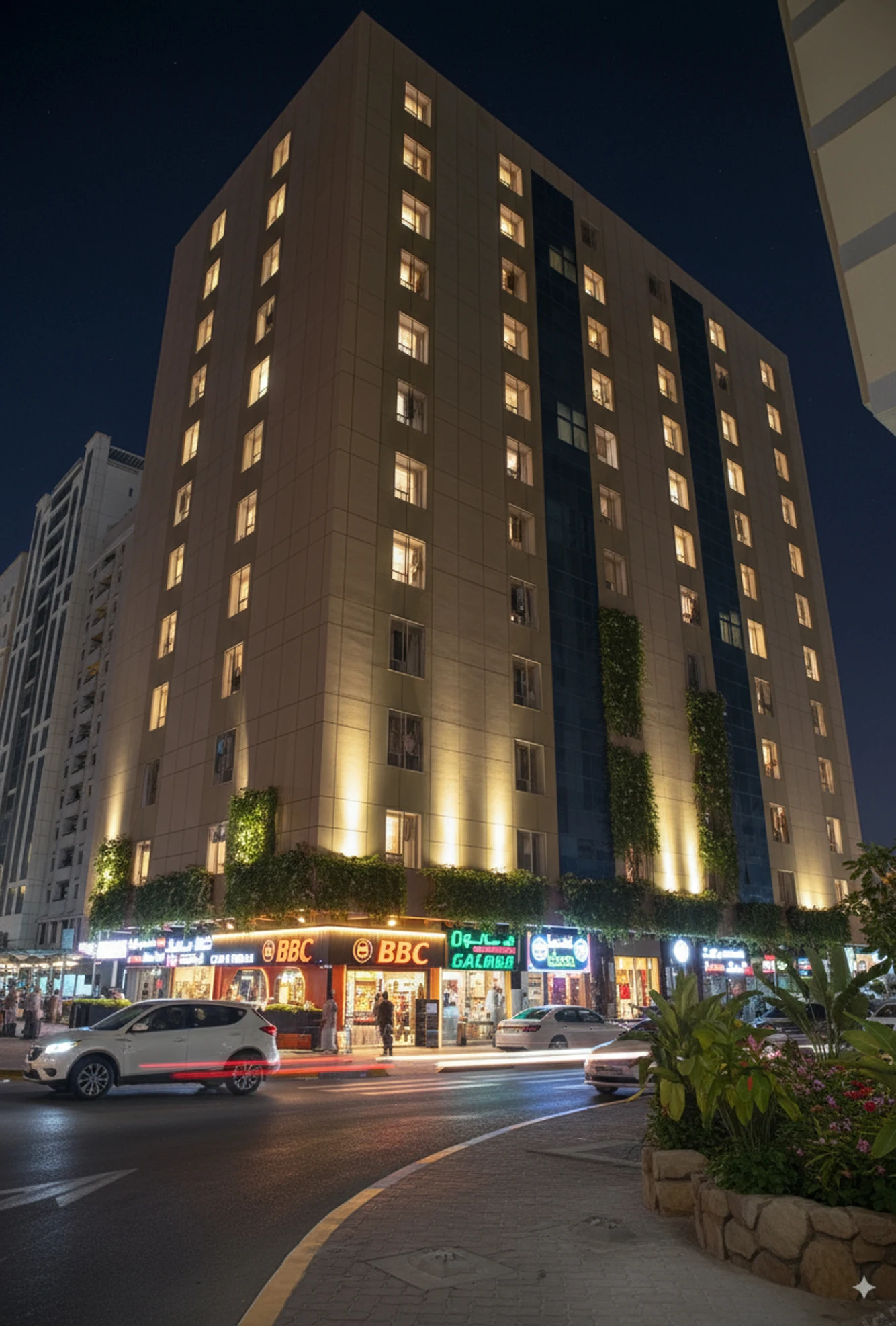 A commercial building comprising two basements, a mezzanine, and nine floors, executed with complete civil and MEP works.